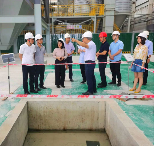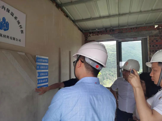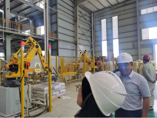 重庆钰居董事长秦华祥、国内顶尖级石膏建材专家彭家惠教授陪同参观并向金科考察团一行介绍了轻质抹灰石膏、内墙保温石膏生产线及生产工艺。