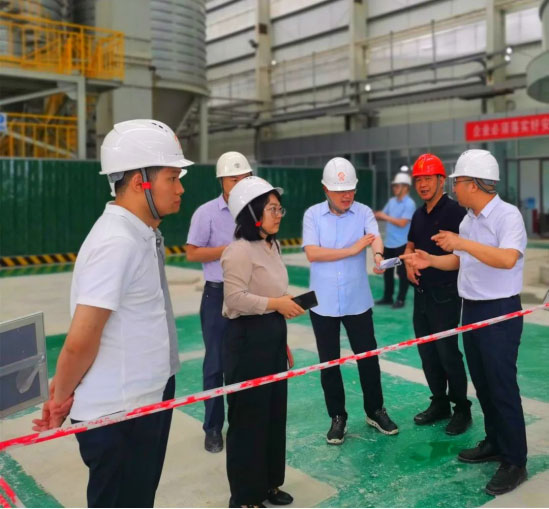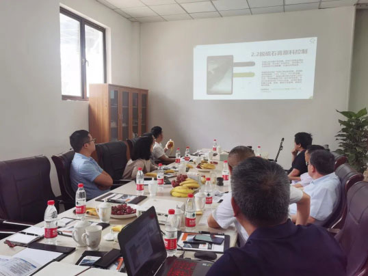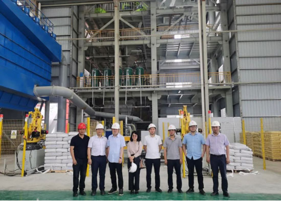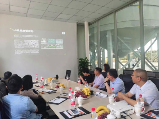 在生产车间实地参观后,双方在会议室进行深度交流。秦董事长详细介绍了公司石膏生产线、工艺和质量控制体系标准,并详细描述了后期发展方向。